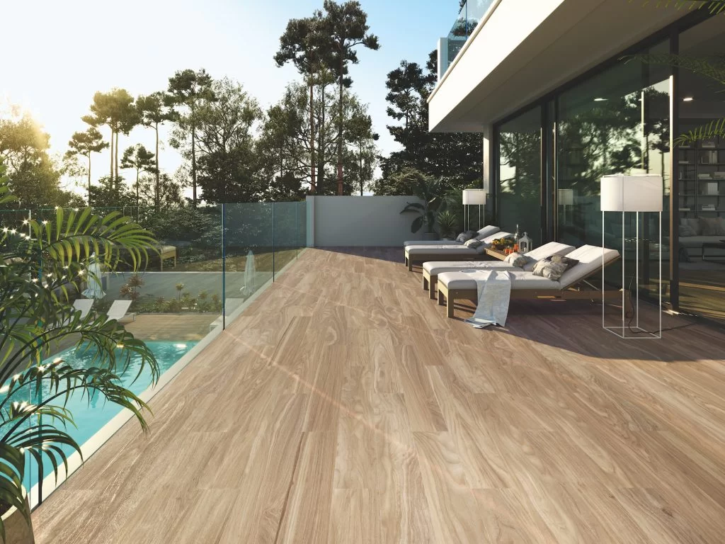 Los suelos de exterior son ideales para espacios al aire libre como terrazas, patios, áreas de piscina y zonas recreativas en jardines. Gracias a su excelente resistencia a la humedad, altas temperaturas y variaciones de temperatura, son una opción confiable para ambientes exteriores.